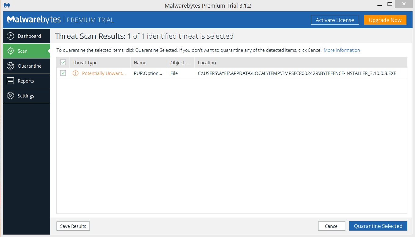 مرحله 4: یک اسکن با Malwarebytes اجرا کنید